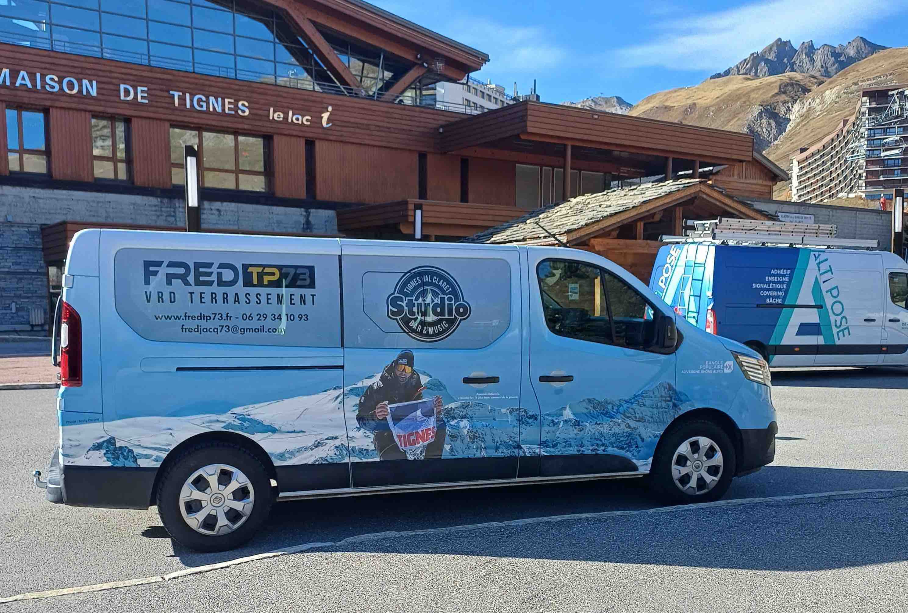 Total covering d'adhésifs conformables sur véhicule utilitaire.